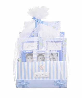 Keep baby memories organized and beautifully presented with this particular comprehensive set from Baby Gear. A "Little Prince" motif appears throughout the items. The mesh packaging, to/from card, and decorative arrangement get this set great for gifting. Includes: 3 Frames: 1st Month, 2nd Month, 3rd Month 2 Photo Albums Accordion Frame Memory Book Storage Box with Lid Made in China