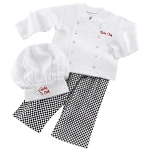 A whisk is embroidered on the chef hat and the words "Baby Chef" are embroidered on the coat