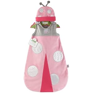 With Baby Aspen’s "Snug As a Bug" Ladybug Snuggle Sack cuteness, comfort and coziness count, this leaf-loving ladybug always comes through! Your new little lady will sleep safe and sound in our "Snug as being a Bug" Snuggle Sack, and she'll look adorable doing it! Just another beautiful Baby Aspen baby gift that leaves a memorable impression! Sweet, ladybug-inspired snuggle sack and cap with plush fabric outside and comfy-cozy 100% cotton inside. Snuggle sack has rose-pink polyester wings separated by a deep-pink wedge, a soft-gray jumper-like fit on the top, a ladybug applique saying Snug like a Bug,and shiny, silvery circle appliques on leading and back. Easy open-and-close snaps with the shoulders and zipper for the bottom for quick access. Matching cap has Silvery cirlce accents and a couple playful, gray antennae with fuzzy balls around the ends. Snuggle sack and cap arrive on a leafy branch-shaped cardboard hanger with little ladybug accents. Size 0-6 months snuggle sack is machine-wash cool and line dry.