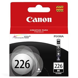 Canon CLI-226 is reputable Canon ink for too long lasting, beautiful photos and documents. These inks offer amazing color gamut and color fastness. Individual Ink Tank System increases efficiency. ChromaLife100+ system: create long-lasting beautiful photos when used with genuine Canon photo paper. It is black in color.